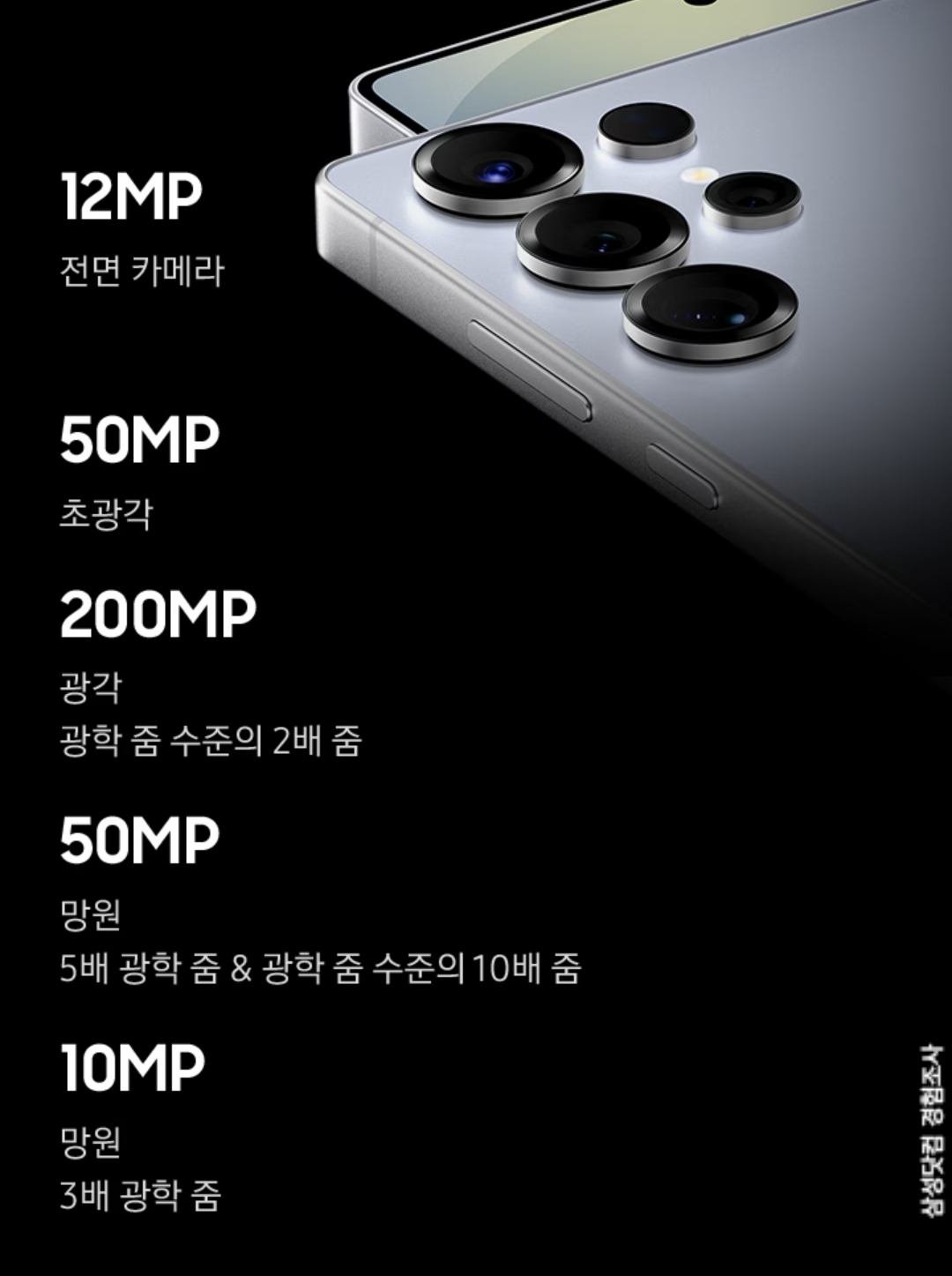 200MP 풀 해상도 모드는 극한의 디테일을 원할 때, 50MP나 12MP 모드는 색감과 노이즈, 저장공간의 균형을 맞추고 싶을 때 유용합니다. 5배 광학줌과 100배 디지털줌까지 지원되어, 멀리 있는 피사체도 선명하게 담을 수 있습니다. 일상 스냅부터 여행, 행사 촬영까지 활용도가 뛰어납니다