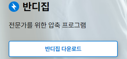 반디집이 설치되어 있지 않았다면 아래 확인하여 설치를 먼저 진행합니다. 아래와 같이 반디집 다운로드를 눌러 환경을 만드세요.