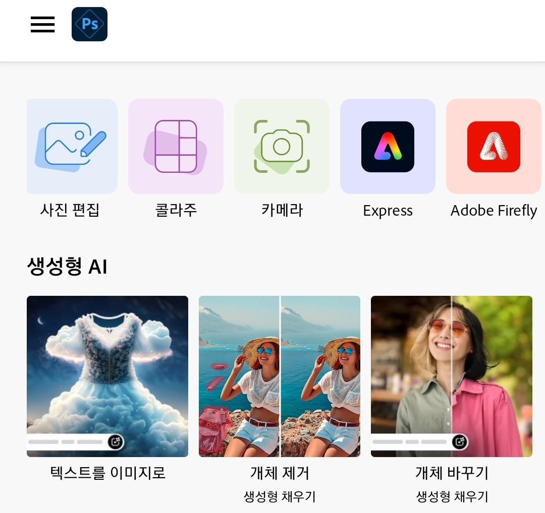 사진 편집, 콜라주, 카메라, Express, Adobe Rifefly, 텍스트를 이미지로 AI, 개체 제거 생성형 채우기, 개체 바꾸기, 생성형 채우기 등의 생성형 AI기술을 제공합니다. 해당 버전을 사용해 개인 학습용으로 해보시다가, 상업적 용도를 진행을 원하면, 유료구독플랜을 통해 변경해 보는 것도 좋은 방법일 수 있습니다.
