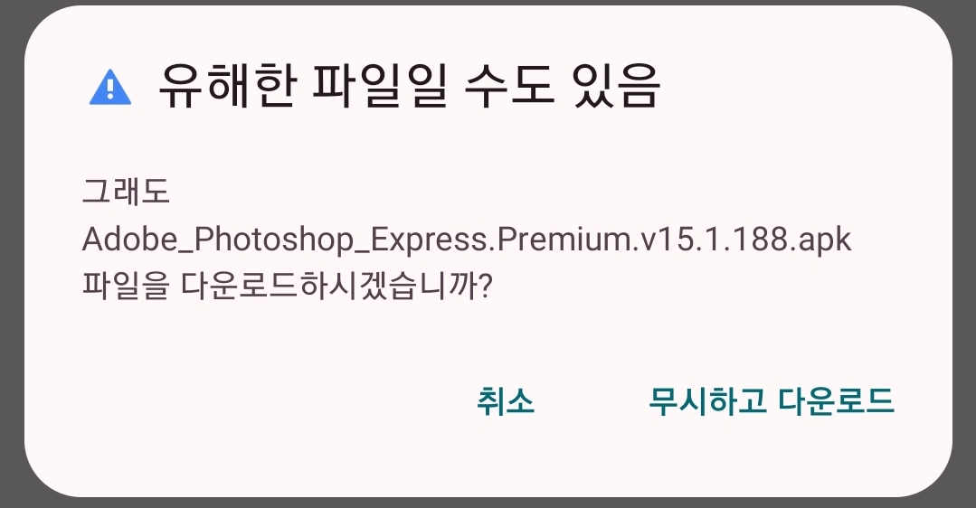 만약 다음과 같은 메시지가 나오면( 이러한 메시지가 나오는 것은 파일을 받는 경로에 따라 다르며 출처에 따라다를 수 있습니다. ) 받고자 하신다면 , 무시하고 다운로드하기를 눌러 진행합니다.