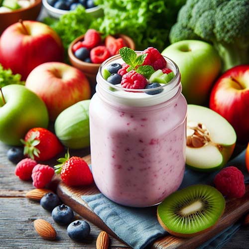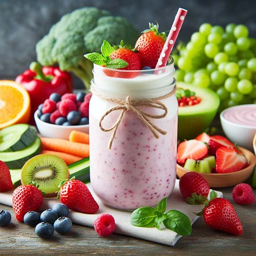좋아하는 과일, 요거트, 채소 몇 개를 섞어 상쾌한 스무디를 만들어 보세요. 섬유질을 보충하는 빠르고 맛있는 방법입니다.