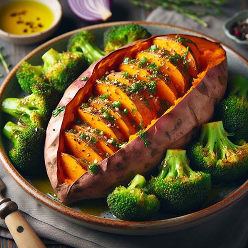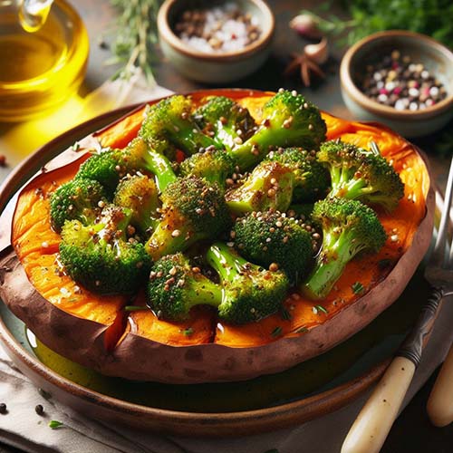 고구마, 브로콜리 등 야채를 구우면 본연의 단맛이 살아나 더욱 맛있어집니다. 풍미 폭발을 위해 올리브 오일과 좋아하는 허브를 뿌립니다.