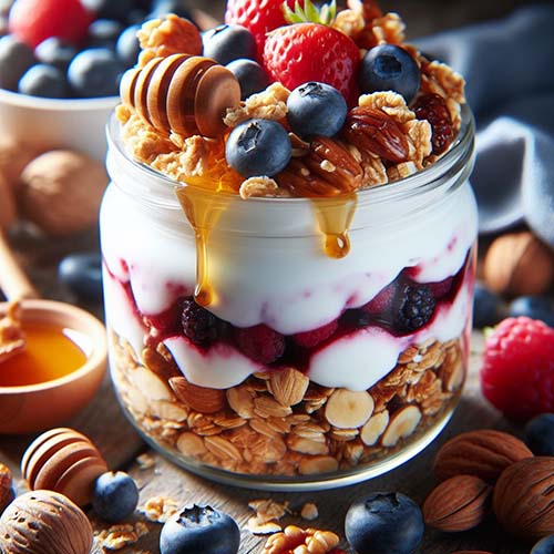 프로바이오틱스는 소화계의 좋은 역할을 하며 요구르트는 프로바이오틱스의 본부입니다. 최대의 이점을 얻으려면 단순하고 무가당 품종을 선택하면 되시고요, 위장이 좋아할 즐거운 간식을 위해 꿀과 견과류를 얹으면 좋습니다.