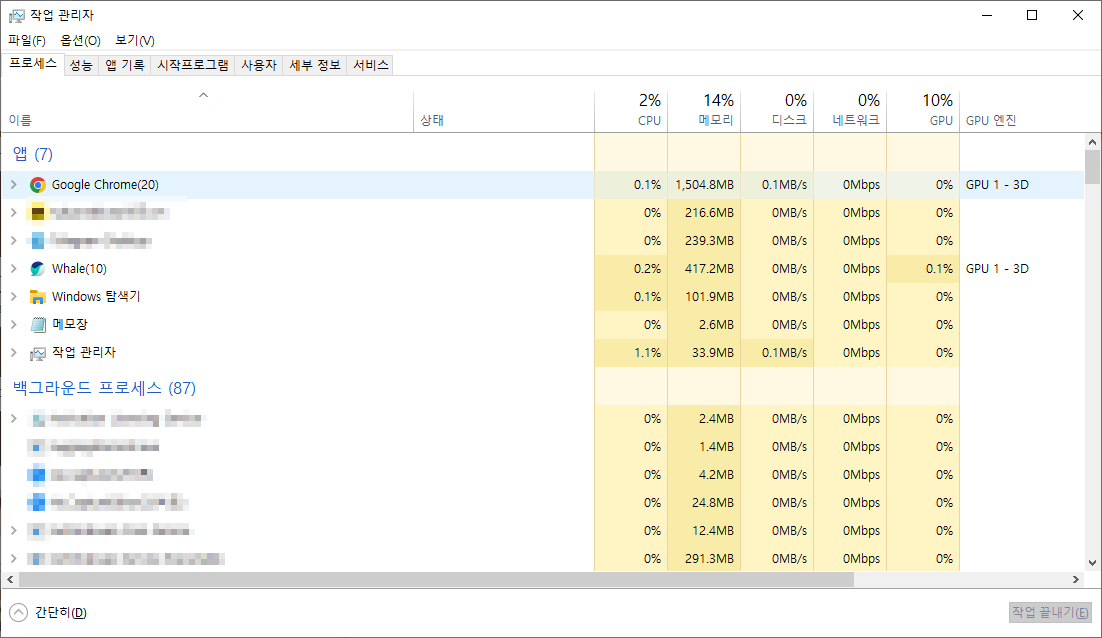 사용하지 않는 프로그램을 마우스 오른쪽 클릭 후 비활성화를 선택하세요. 일단 이렇게 시도 했구요.