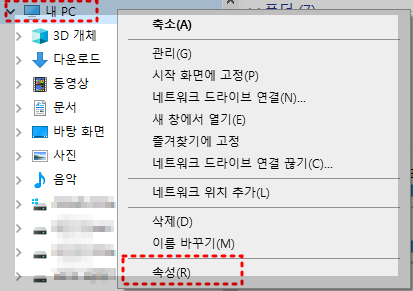 파일 탐색기에서 디스크 드라이브를 선택하고 마우스 오른쪽 클릭.