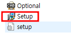 끝까지 들어가면 이런 파일이 확인되는데, 마우스 우 클릭하여 " Setup "을 눌러 관리자 권한으로 눌러 줍니다.