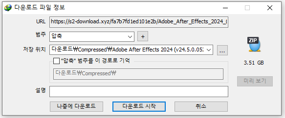 마우스 우클릭 하셔서, IDM으로 받기를 하면 빠르게 받을 수 있어요. 용량이 3.5gb 정도 되는데 부담없습니다. 그냥 받으셔도 되며 위에 " 다운로드 "를 클릭하시고 받기 작업을 진행하시면 됩니다.