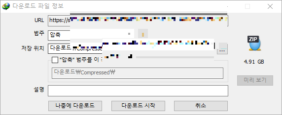 IDM이 설치되어 있다면 위와 같이 확인이 됩니다. 용량은 4.91GB 정도로 확인이 되는 것을 보실 수 있습니다. 그리고, 다운을 시작합니다. 다운이 완료되면 해당폴더로 이동하여 줍니다. [ 압축 해제 비번은 위의 다운로드 페이지를 참고하시면 됩니다. ]