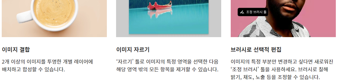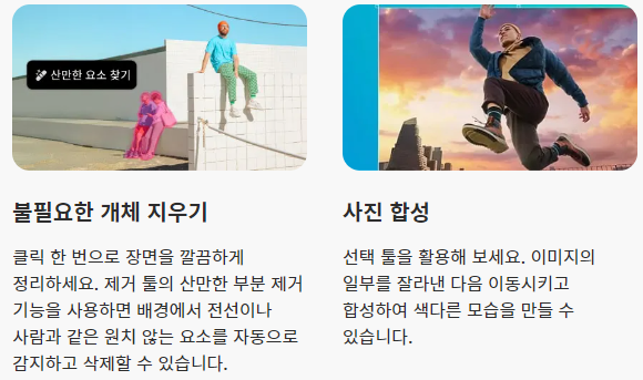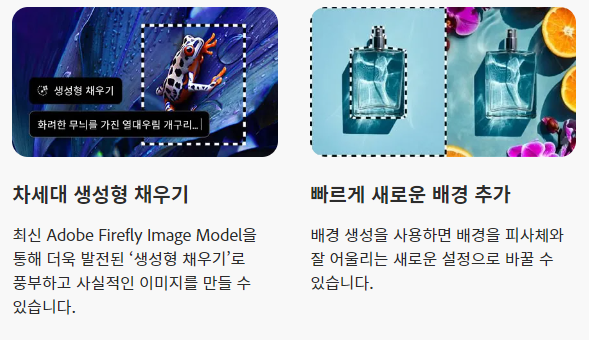 위와 같이 개체 지우기 기능과, 합성기능이 Ai기술을 사용하여 기능이 좋아진 점을 확인하실 수 있습니다. 어도비 사이트에서 정식 무료버전을 이미 배포하고 있으니 참고하여 확인하면 좋습니다. 먼저 체크하시는 것을 권장합니다. ( 참고는 언제나 향 후 많은 도움이 됩니다. )