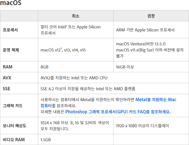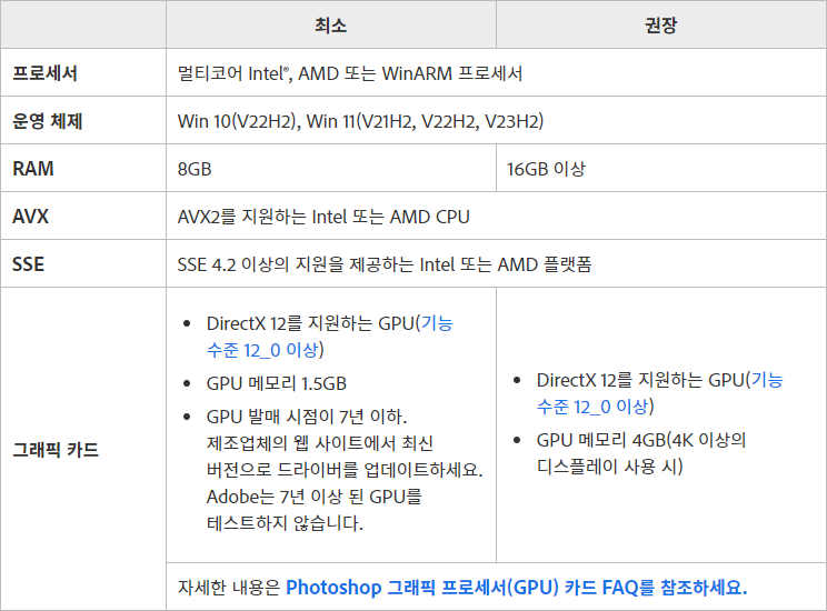 다운로드 설치에 앞서 중요한 부분을 차지하고 있는 설치 사양을 먼저 확인하세요. 설치 사양이 2024버전과 달리 변동이 생겼으니 사양을 참고하는 것은 당연한 일입니다.