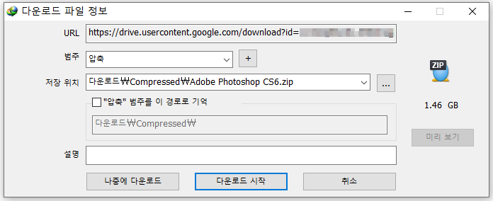 IDM(인터넷 다운로드매니저)를 설치받아, 다운로드 속도를 최대치로 올려 시간을 절약하는 것이 좋습니다.