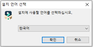 실행하면, 한국어로 하고싶다면 " 한국어" 선택하시고 확인을 눌러주시고, " 예 " 를 눌러주세요.