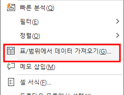 데이터 범위를 선택하고, Ctrl + T를 눌러 표로 변환 옵션을 선택합니다.