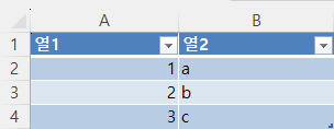 "표2"라는 시트가 만들어지고, 표가 생성이 됩니다. 그 전의 단계가 바로 아래에 있습니다.