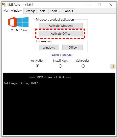 KMSAuto++을 클릭하세요.