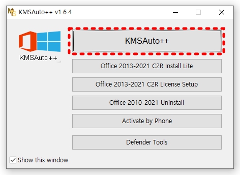 KMSAuto++을 클릭하세요.