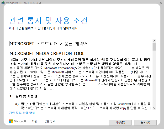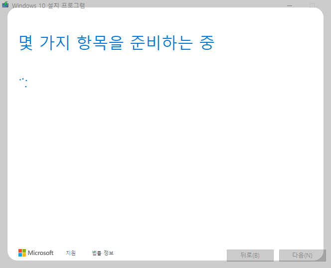 동의를 누르시고 진행합니다. 그러면 또 " 몇 가지 항목을 준비하는 중 " 라고 다시 뜹니다. 기다리면 되겠습니다.