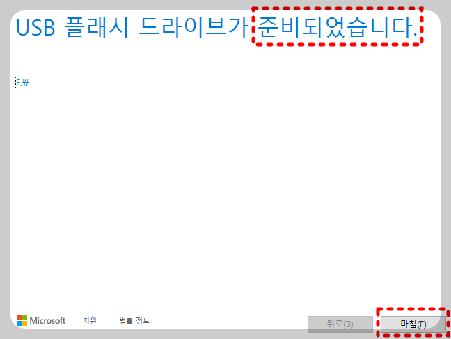지금까지, USB를 포맷하여 이 곳에 윈도우10 설치시스템 까지 모두 완료되었네요.