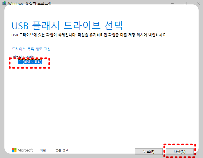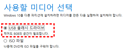 사용할 미디어는 위 그림처럼 usb를 선택하고 , 다음을 누르세요.