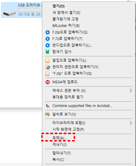 그런다음, 먼저 포맷을 해서 안에 내용물이 없도록 깨끗하게 비워두고 진행해야 합니다.