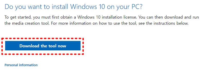 준비된 USB에 윈도우10을 넣기 위해서는 마이크로소프트에서 제공하는 툴을 받아야 하는데요. 위에 설명드린 것 처럼 MCTool 프로그램을 먼저 PC에 다운받아야 합니다. 아래를 확인하시고 다운 받으세요.