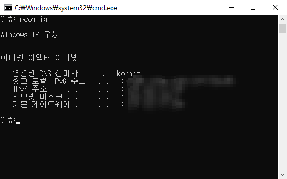IP 주소 갱신: 명령 프롬프트를 열고 ipconfig /release와 ipconfig /renew 명령어를 차례로 입력하여 IP 주소를 갱신합니다.( 명령 프로트를 여는 방법은 " 윈도우 로고키 + R "키를 누르고 " cmd "를 입력하면 도스 모드로 진입을 하고 검정색 창이 뜨는데 여기에 위와 같은 명령어를 치는 것이죠. )